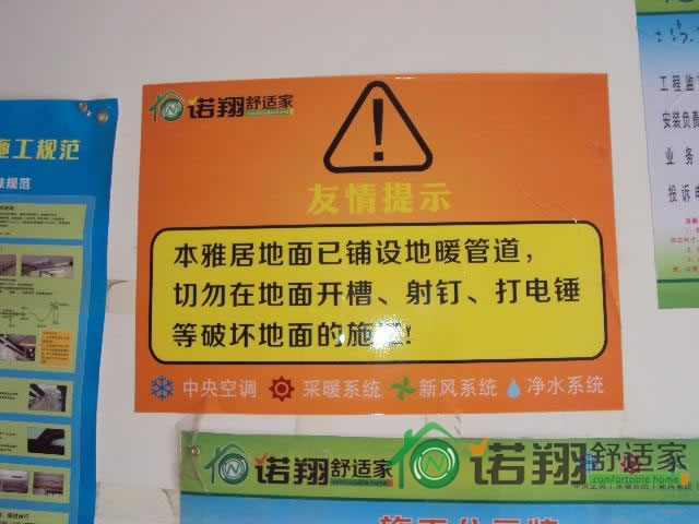进场标语提示,防装修损害地暖管道